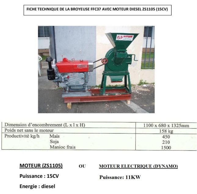 YTO : Broyeuse de manioc et mais type FFC37 (Moteur Diesel )