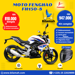 MOTO FENGHAO - FH125-8 Info de Base. N° de Modèle. HD150-8 Certificat CCC, CE, CQC Taille du moteur <250cc mode de freinage Frein avant à disque Tambour Méthode de refroidissement Refroidissement par air Gamme Année 2022 État Nouveau Paquet de Transport Carton/Wooden...