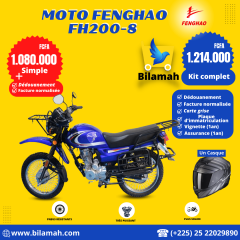 MOTO FENGHAO - FH200-12 Info de Base. N° de Modèle. QM150-16H Méthode de refroidissement Refroidissement par air État Nouveau Dimensions (L*W*H)(mm) 1998*700*1010 Wheelbase (mm) 1270 Min Ground Clearance (mm) 140 Seat Height 730 Net Weight (Kg) 108 Max. Allowed Load (Kg)...