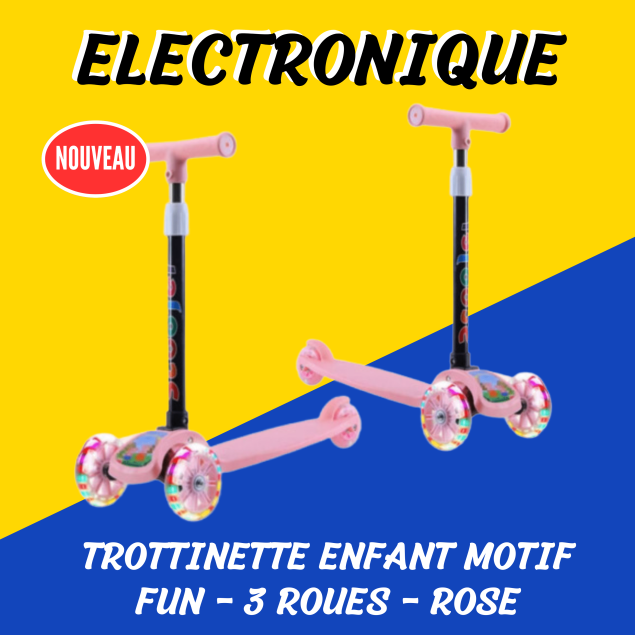 Trottinette Enfant Motif Fun - 3 Roues - Rose
