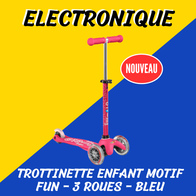 Trottinette Enfant Motif Fun - 3 Roues - Bleu
