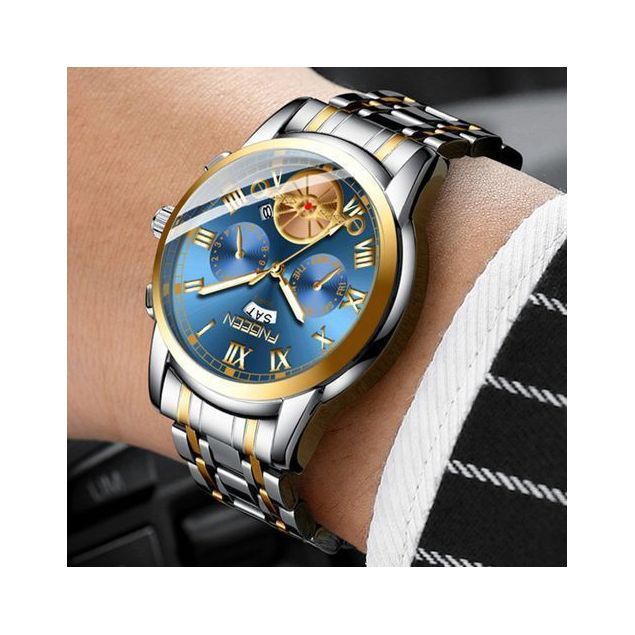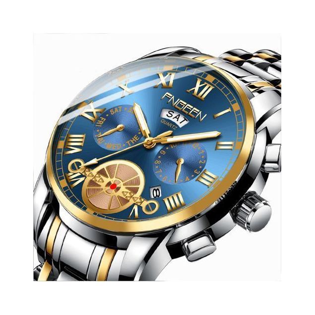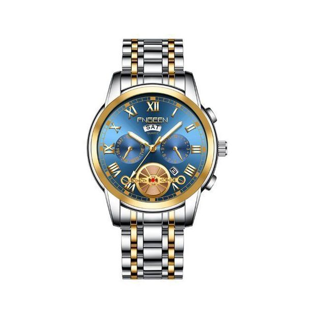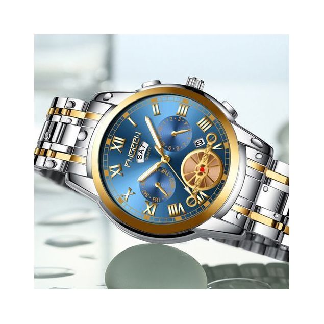 Montre d'affaires classique Fngeen à double calendrier Bleu