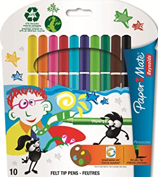 PAPERMATE by REYNOLDS Pochette de 12 feutres à dessin pointe moyenne dont 1 fluo