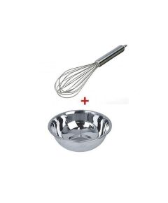 Détails Ce saladier et ce fouet  en inox, la matière leur procure une grande résistance dans le temps. Ces ustensiles idéal pour préparer les salades, les préparations culinaires ou les pâtes à pâtisserie.  Fiche technique PRINCIPALES CARACTÉRISTIQUES Type de produit :...