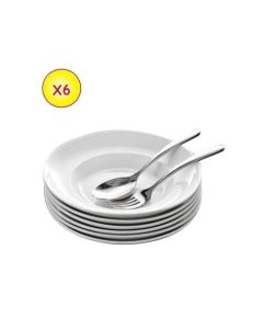 Fiche technique PRINCIPALES CARACTÉRISTIQUES Type de Produit: Assiette Matière : porcelaine Diamètre: 23 cm Quantité: 6 Poids: 0.7 kg DESCRIPTIF TECHNIQUE   Poids (kg): 0.7 Couleur: Blanc