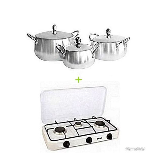 - Type de produit : Ensemble Cuisinière 3 Feux Avec Couvercle + 3 Casserole