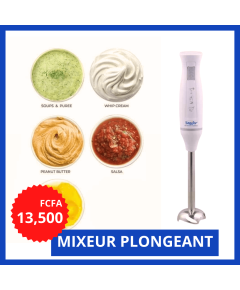 ILUX :  MIXEUR A MAIN LX 19  Type de produit ‎:‎ Mixeur plongeant Puissance du moteur : 160 W Nombre de vitesses : 2 Lames : En acier inoxydable Manche amovile: A2 boutons Poids : 1Kg