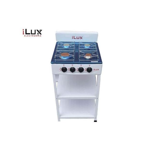 ILUX: Rechaud à Gaz Avec Etagère - 4 Feux - INOX - LXG-4008