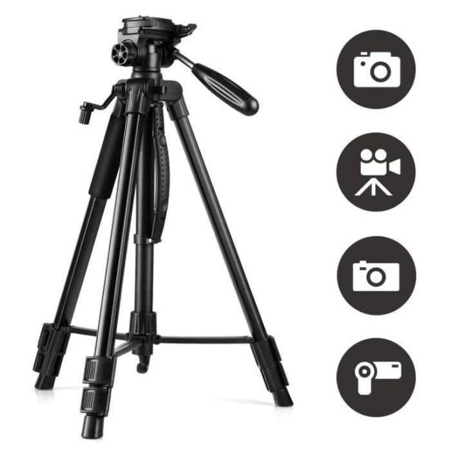 Trépied protecteur avec tête d'amortissement pour appareil photo reflex numérique Canon Nikon Trépied en alliage d'aluminium de haute qualité et sélectionné grâce à un traitement de surface spécial, produit par un examen rigoureux, léger et robuste et facile à transporter. Et capable de s'adapter à l'environnement brut et complexe du terrain. À la fois pour les appareils photo traditionnels, les appareils photo numériques et également adapté à l'utilisation de petits appareils photo.Caractéristiques: - Support de trépied en alliage d'aluminium, léger et compact, robuste et durable.- Tête de boule amortissante panoramique à 360 °, précise et efficace, supporte la prise de vue verticale à 90 °.- Pieds en aluminium à 3 sections avec verrous à dégagement rapide et pieds en caoutchouc antidérapants.- Plaque de dégagement rapide amovible pour une connexion rapide à l'appareil photo ou au caméscope.- Caractéristiques avec niveau à bulle pour fournir des ajustements d'équilibre précis sur un sol irrégulier.- Colonne centrale réglable,