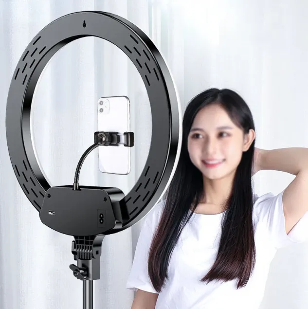 Éclairage annulaire LED SMD de 18 po à intensité variable avec une large plage de gradation de 1% à 100%.Conception spéciale LED SMD, légère et portable. Entraînement à courant constant, faible perte de puissance. AUCUN rayonnement lumineux ultraviolet et infrarouge, faible rendement thermique, sécurité et protection de l'environnement. Longue durée de vie de plus de 50000 heures.