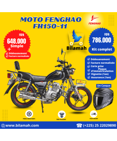 MOTO FENGHAO - FH150-11 Info de Base. mode de freinage Frein avant à disque Tambour Méthode de refroidissement Refroidissement par air Gamme Année Après 2010 État Nouveau Marque Déposée FENGHAO Origine Guangzhou Capacité de Production 8000