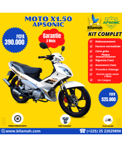 CARACTÉRISTIQUES FICHE TECHNIQUE Marque : APSONIC Modèle : X1 AP50 NB : moto neuve avec un moteur d'origine. facture normalisée dédouanement. Carte grise Assurance vignette plaque d'immatriculation casque