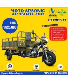 DESCRIPTION MOTO APSONIC AP150ZH-200, en vente Prix très intéressant. Possibilité de la commander aussi avec le Kit complet comprenant toutes les pièces administratives: Dédouanement Facture normalisée Vignette (1an) Carte grise Immatriculation Assurance (1an)...