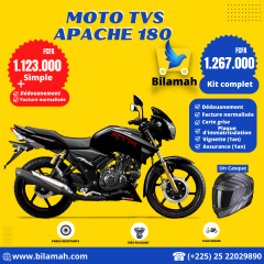 Moto TVS Apache 180 Marque: TVS Statut : En stock Type de moteur 4 Temps, Air Cooler Déplacement du moteur (CC) 177.4 CC Nombre de cylindres 1 Puissance (PS @ rpm) 17,5 PS Couple (Nm @ rpm) 15,5 Nm Type de carburant Essence Type de transmission Chaine Longueur*Largeur*Hauteur...