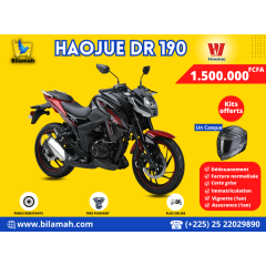 HAOJUE DR 190S La DR190S est une superbe et robuste moto alimentée par un moteur à injection de type mono-cylindre, refroidi par air, quatre temps avec une puissance maximale de 11KW. Elle dispose de 5 vitesses et peut fonctionner à 105 Km/h voire 120 km/h. Pour un réservoir d’une contenance...