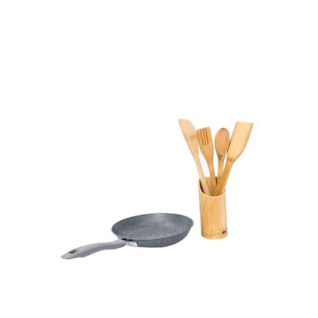 Casserole Essentiel + 4 Lots De Spatules En Bois - Gris /Marron