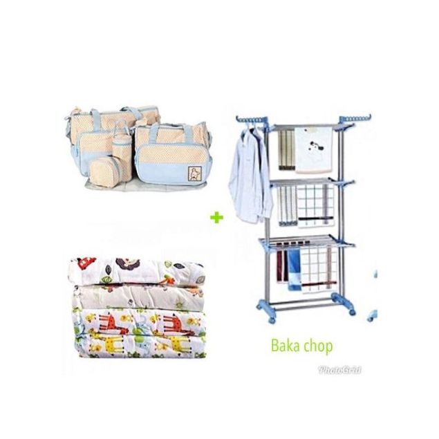 Séchoir 3 Niveaux Avec Roues + Sac à Langer + Draps De Sortie 4 Pieds