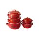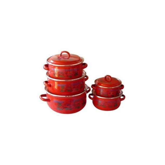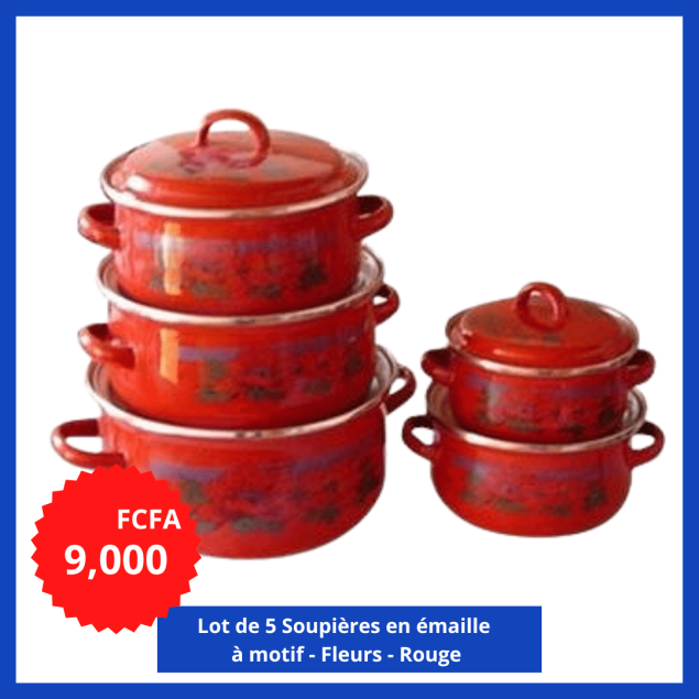 LOT DE 5 Soupières En émaille à Motif - Fleurs - Rouge