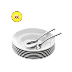 Lot De 6 Assiettes Creuses En Porcelaine + 6 Cuillères Et Fourchettes - Blanc