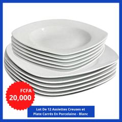 Lot De 12 Assiettes Creuses Et Plate Carrés En Porcelaine - Blanc