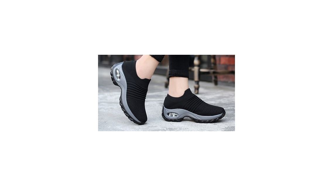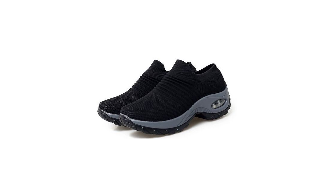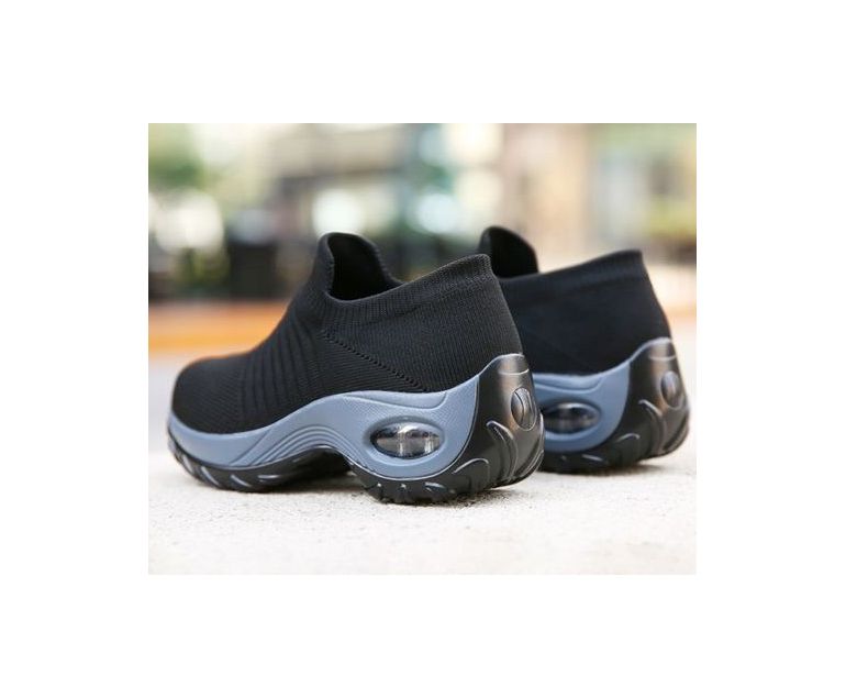 Baskets à semelles compensées pour femmes, chaussures à enfiler, confortables et souples - Noir