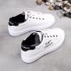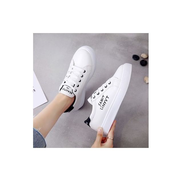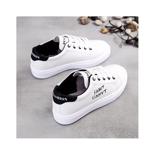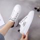 Baskets à bord retourné pour femmes, chaussures respirantes et souples avec broderie de lettres, style décontracté - Blanc