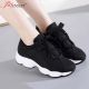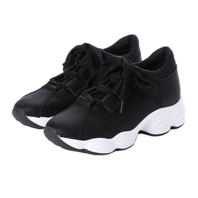 Baskets plates respirantes à lacets pour femmes, chaussures en toile, tennis décontractées - Noir