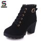 Bottines à talons hauts et plateforme pour femmes, chaussures à boucle, talon épais, bottes courtes - Noir