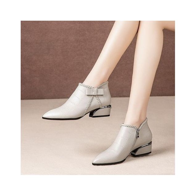 Bottines à talons hauts pour femmes, bottes à bout pointu en métal, perceuse à eau inversée, à talons fins - Beige