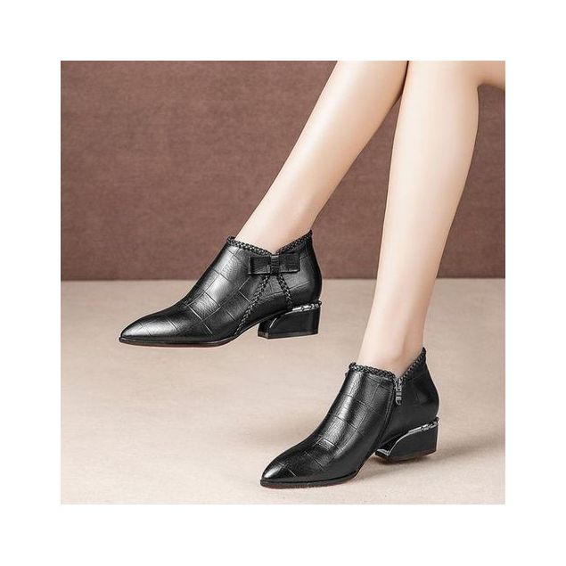 Bout pointu talon bas bottines femmes, bottes courtes dames - Noir