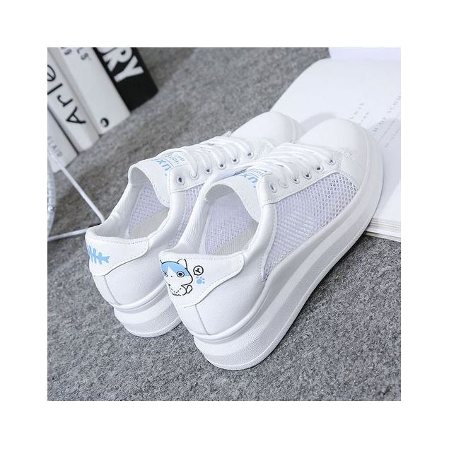 chaussures blanches décontractées à lacets pour femmes - BLANC