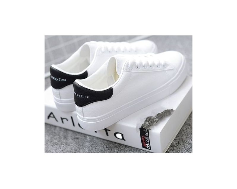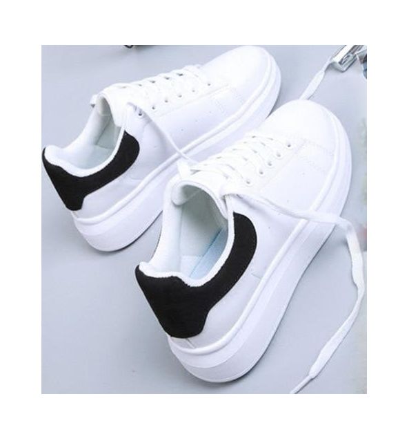 Chaussures vulcanisées en cuir PU pour femmes - Blanc