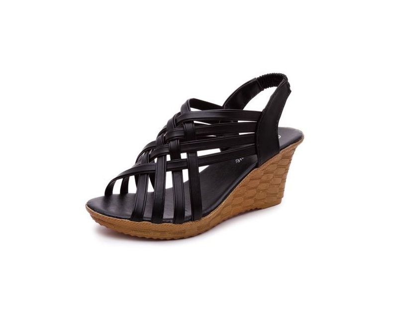 - Modèle: 草编坡跟凉鞋-黑-IC