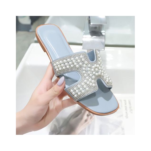Sandales de plage plates Pantoufles Femmes - Bleu