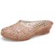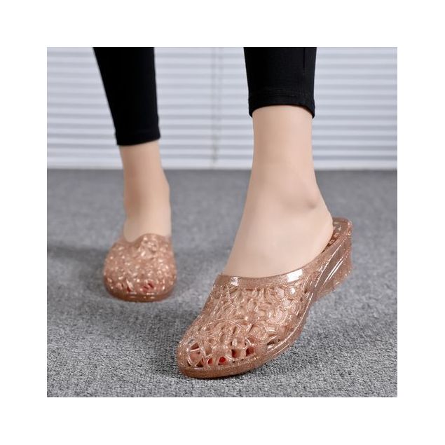 Sandales en gelée pour femmes, mules décontractées, à enfiler, pantoufles de plage à talons compensés évidés - Kaki
