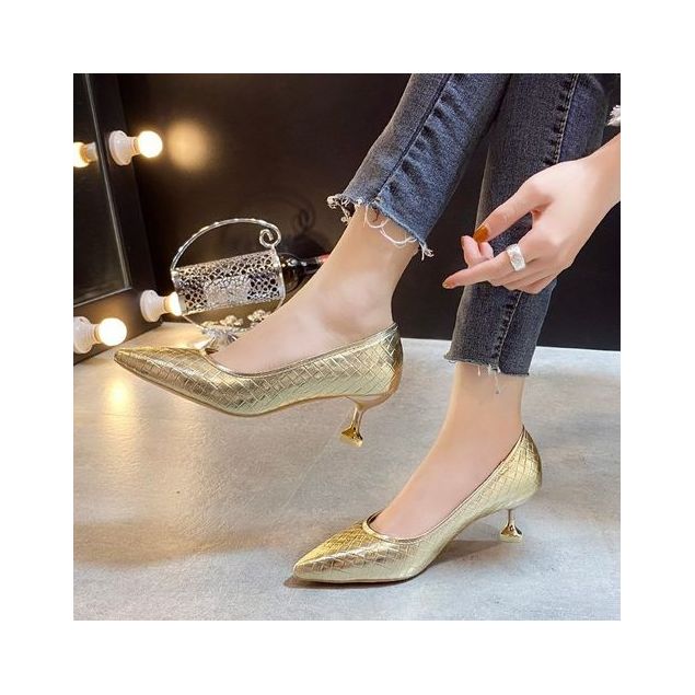 Talons Hauts Escarpins bout Pointu Dame De Luxe Talons Bas - Or