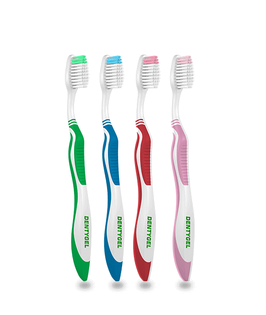 Le long cou de la brosse à dent DENTYGEL et sa tête compacte permettent d’atteindre les dents du fond pour vous procurer un nettoyage complet de la bouche. La disposition des poils permet un meilleur brossage entre les dents