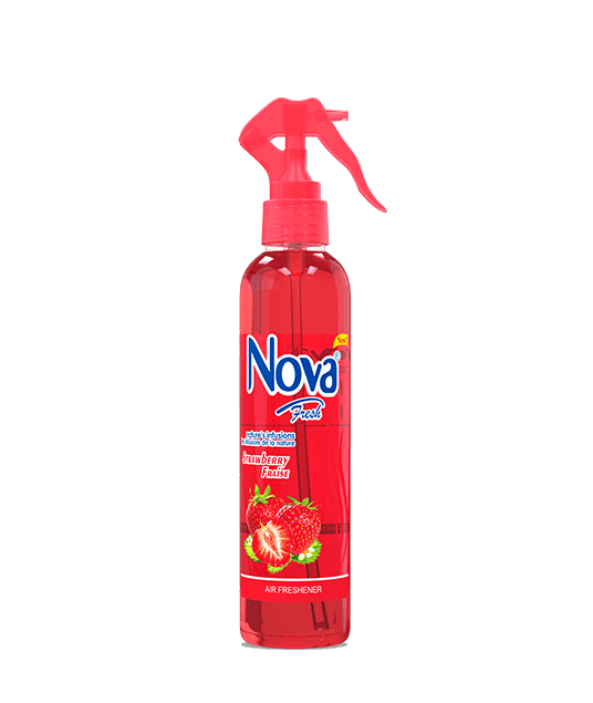 Nova Fresh Fraise lutte contre les mauvaises odeurs et parfume agréablement toutes les pièces de votre maison. Vaporiser et retrouver une sensation de parfum naturel sans gaz chimique. Utilisez Nova Fresh tous les jours pour avoir un environnement frais et parfumé.