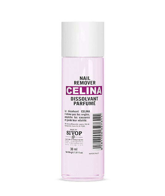 Le dissolvant Celina n'abime pas les ongles, empêche les cassures et garde leur vitalité.