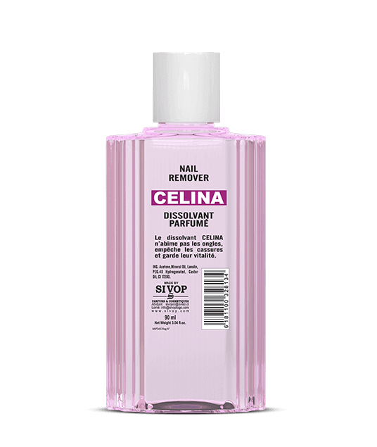 Le dissolvant Celina n'abime pas les ongles, empêche les cassures et garde leur vitalité.