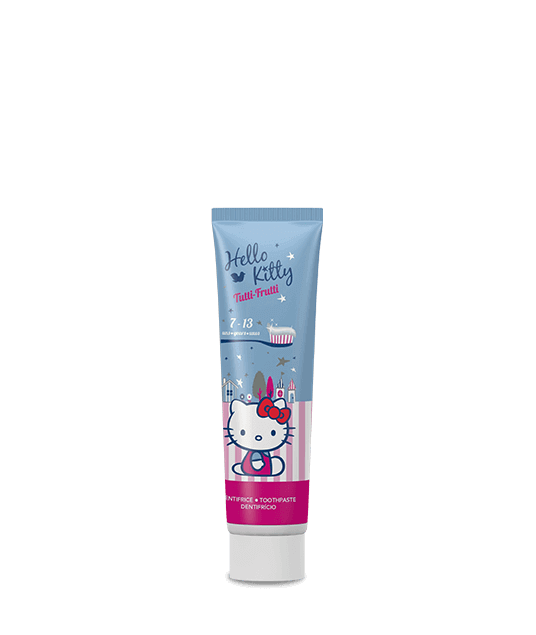 Soin et entretien de denture mixte, le dentifrice HELLO KITTY Junior (7 à 13 ans) protège les dents définitives et les muqueuses buccales. Il favorise le durcissement des dents et renforce l’émail. Aide à lutter contre les attaques acides des bactéries de la plaque dentaire et favorise la prévention quotidienne des caries