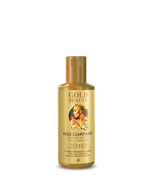 L’huile GOLD BEAUTY hydrate votre peau et l’éclaircit graduellement. Enrichie à l’huile précieuse de jojoba, elle nourrit la peau, combat efficacement les taches et les effets du vieillissement et redonne de la souplesse à l’épiderme.