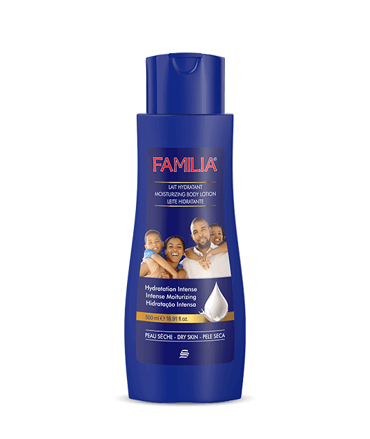 Le lait FAMILIA, hydratation intense, protège les peaux fragiles des rougeurs et des irritations mineures et laisse la peau souple et douce.
