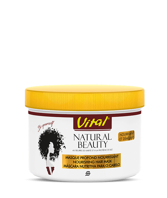 Véritable baume de soin, le masque profond nourrissant VITAL NATURAL BEAUTY enrichi en protéine de blé et en beurre de karité, nourrit, hydrate et protège les cheveux en profondeur. Sa texture souple et légère permet de l’utiliser comme masque ou comme après-shampoing pour faciliter le démêlage, apporter brillance, souplesse et douceur aux cheveux. Pour un rendu optimal, utilisez en complément la lotion spray hydratante VITAL NATURAL BEAUTY