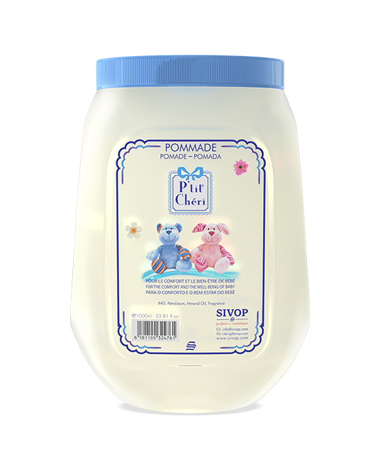 La pommade P'TIT CHERI nourrit et apaise la peau délicate de bébé en la laissant douce et délicatement parfumée.