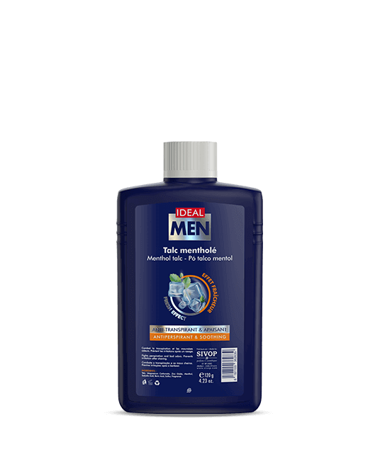 Le talc mentholé IDEAL MEN combat la transpiration et les mauvaises odeurs. Prévient les irritations après rasage et apaise la peau.