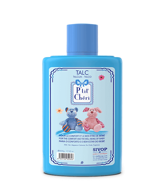 Le talc P'TIT CHERI est une poudre qui protège et adoucit la peau de bébé. Soulage, apaise les irritations et absorbe l'excès d'humidité et prévient les rougeurs, les boutons de chaleur.