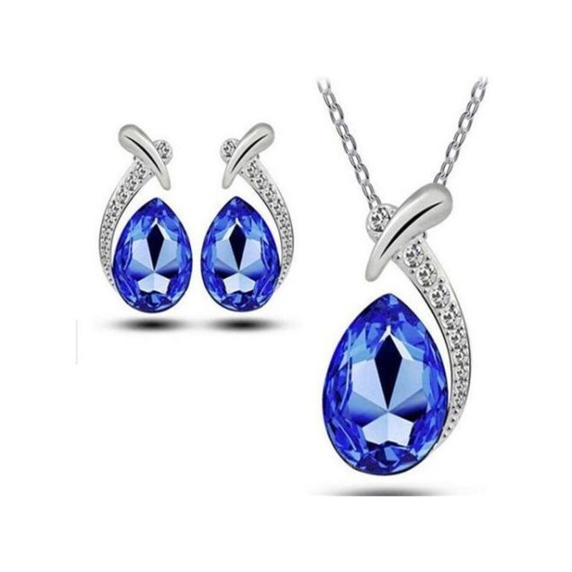 - Modèle: Lot De Boucles D'Oreilles + Collier Class Plaqué Argent - Bleu