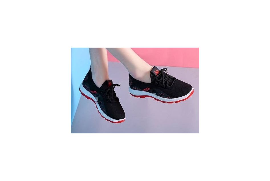 Chaussures de sport antidérapantes pour femmes, baskets en maille, respirantes, à semelles souples, à amorti, légères, à lacets - BT62-Noir/Rouge