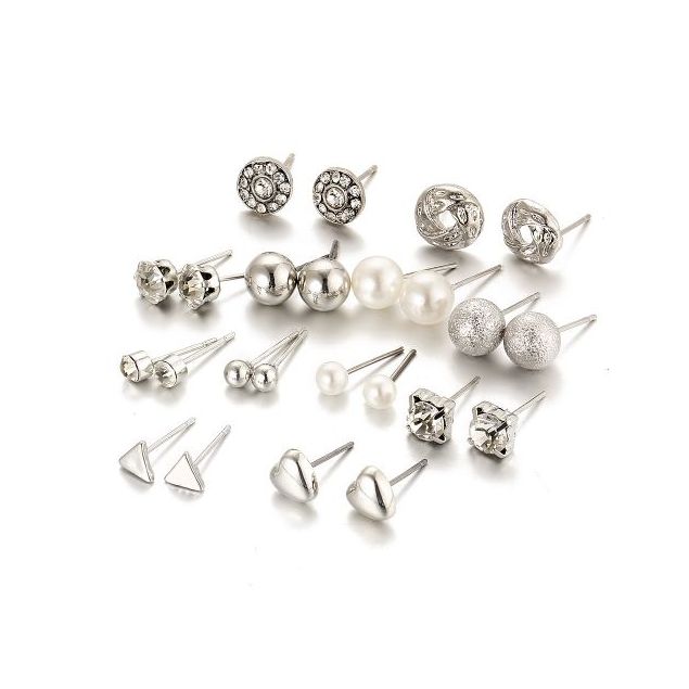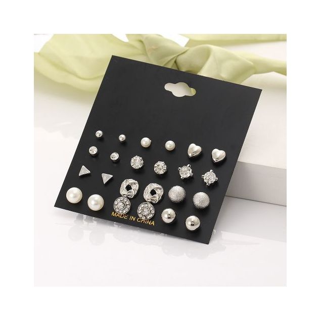 chic Boucles D'Oreilles pour femme 12 Paires - Argent